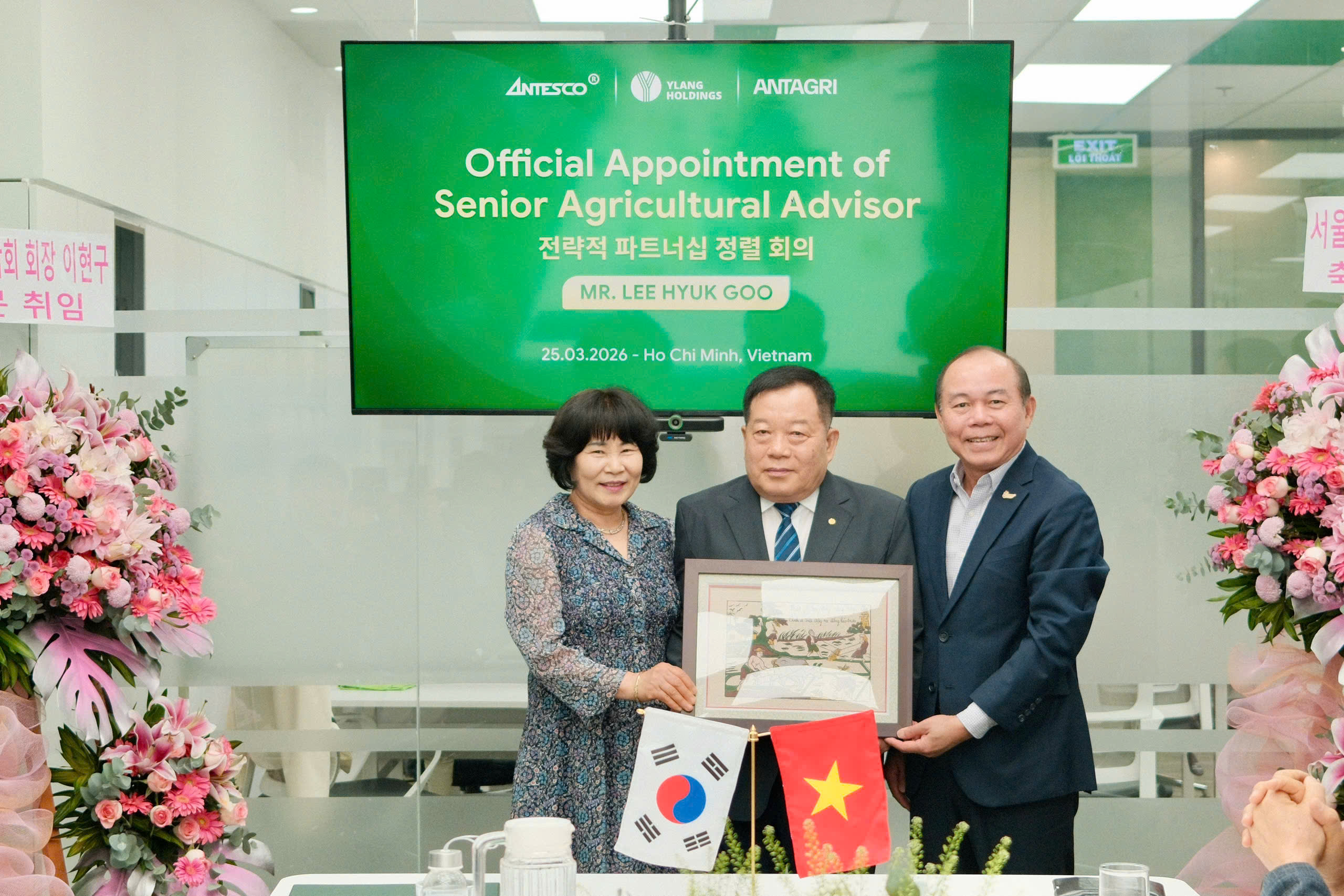 Ngày 25/03/2026, Ylang Holdings, ANTESCOANTAGRI đã đồng tổ chức Lễ công bố bổ nhiệm ông Lee Hyuk Goo giữ vai trò Cố vấn Nông nghiệp Cấp cao, đánh dấu một bước tiến quan trọng trong định hướng tăng cường chiều sâu chuyên môn và hoàn thiện nền tảng phát triển nông nghiệp của ANTAGRI.