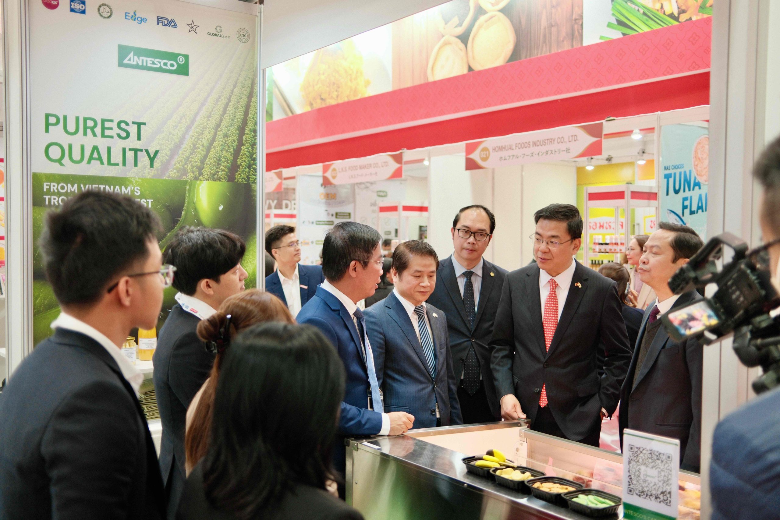 Triển lãm diễn ra từ 10:00 đến 17:00 tại Tokyo Big Sight, quy tụ đông đảo nhà nhập khẩu, nhà phân phối và doanh nghiệp thực phẩm từ Nhật Bản và nhiều quốc gia. Gian hàng Antesco đón tiếp nhiều khách tham quan đến tìm hiểu về các sản phẩm trái cây và rau củ chế biến của Việt Nam.